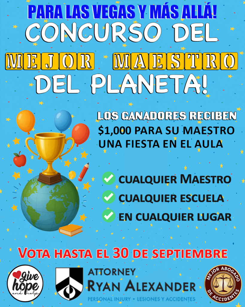 Primero, estamos mostrando todo nuestro respaldo a nuestro abogado destacado, Ryan Alexander, quien ha sido un gran aliado de la comunidad latina, invitándote a votar por él en Best of Las Vegas.